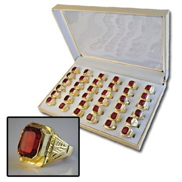 288 pcs-- "Faux" 10/8mm ruby ring-- goldtone plated-- sizes 6 & 8-- in displays! Only $ .34 pcs!