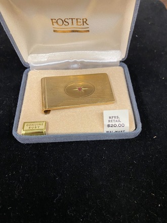 14kt Goldtone Men's Money Clip with Genuine Ruby-- Retails for $20.00- your cost $2.77 each! Each comes in velvet gift box!